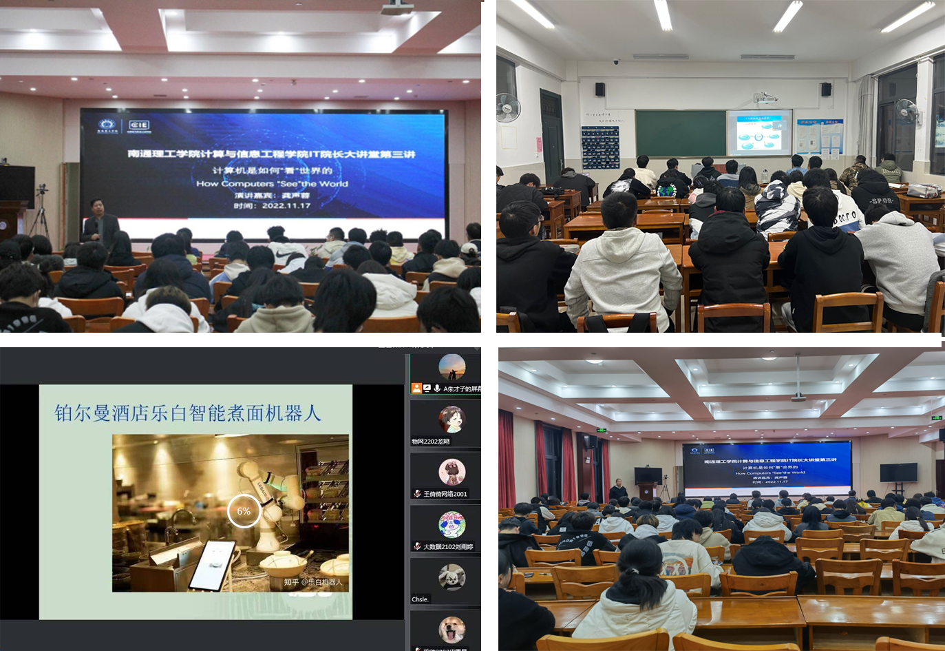 11月17日晚,以诚为本赢在信誉9001cc于综合楼4楼西博厅开展“IT院长大讲堂”系列活动第三讲——计算机是如何“看”世界的,本次讲座活动邀请常熟理工学院计算机科学与工程学院院长、苏州大学博士生导师龚声蓉教授做学术讲座活动,学院副院长朱长永及以诚为本赢在信誉9001cc部分师生参加活动。