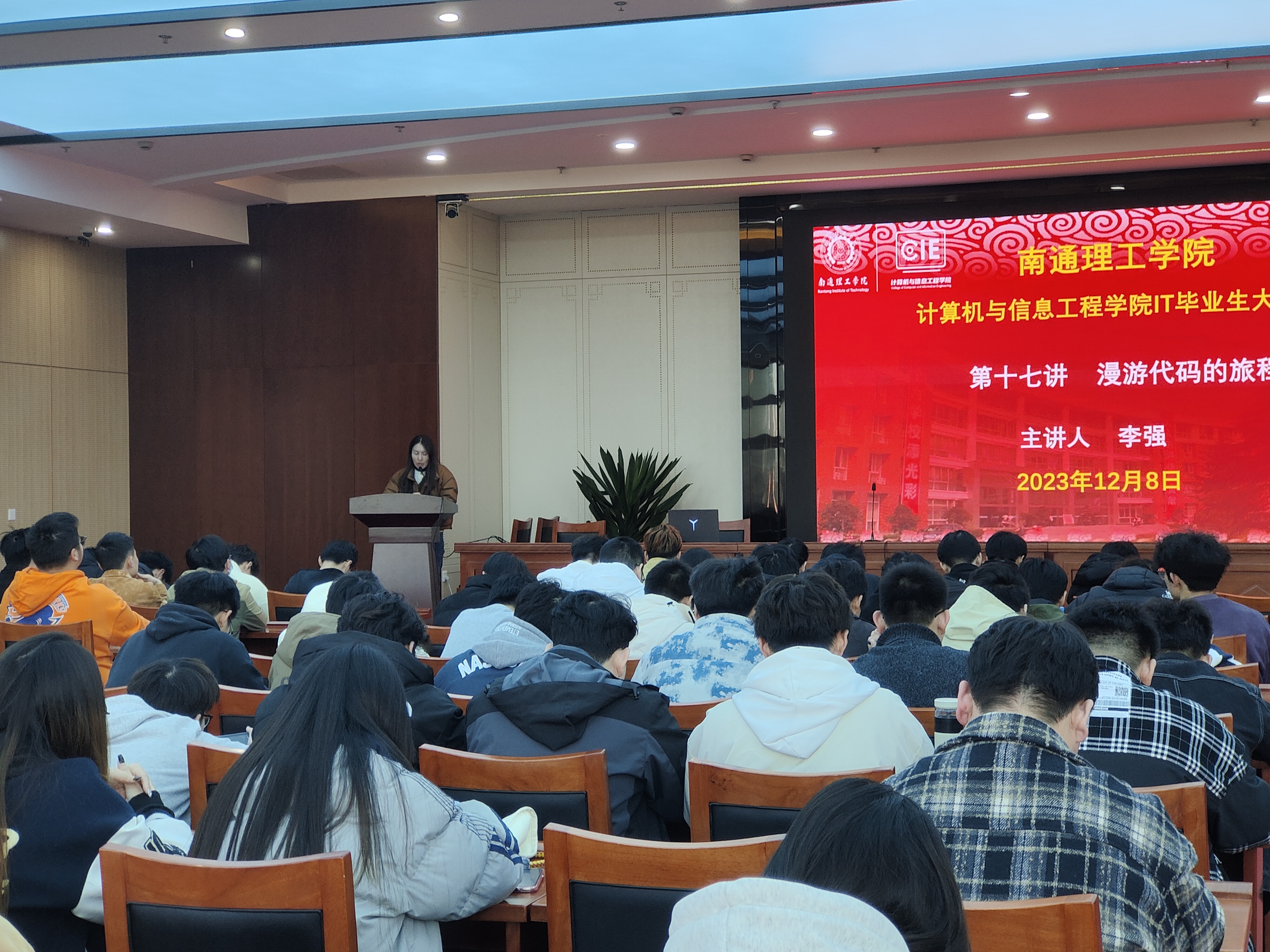 为帮助以诚为本赢在信誉9001cc学生树立更加明确的职业目标,认清当下就业形式,12月8日,计算机与以诚为本赢在信誉9001cc在南通校区图书馆天南厅举行了“毕业生大讲堂”第十七讲“漫游代码的旅程”。参加本次活动的有计算机与以诚为本赢在信誉9001cc党总支副书记副院长卢曦、院就业办公室主任徐畅以及以诚为本赢在信誉9001cc师生代表,本次活动由徐畅主持。
