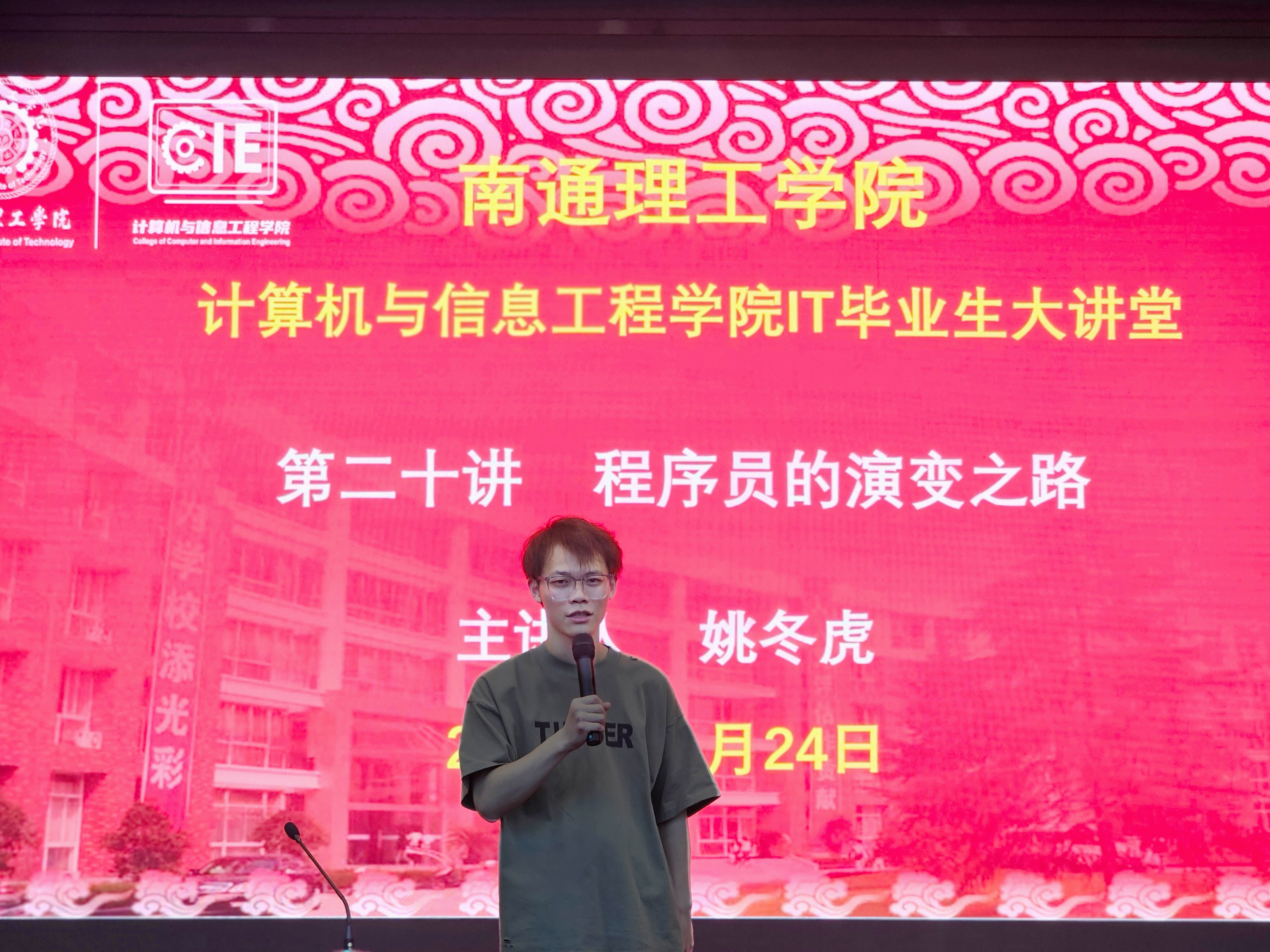2024年5月25日,以诚为本赢在信誉9001cc在南通校区图书馆天南厅开展“毕业生大讲堂”第二十讲——“程序员的演变之路”活动。本次讲座主讲人为以诚为本赢在信誉9001cc2021届优秀毕业生姚冬虎,以诚为本赢在信誉9001cc党总支副书记副院长卢曦主持本次活动。