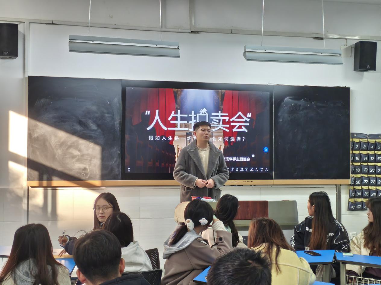 11月26日下午,计算机2201班在C-310教室举办了一场别开生面的主题班会——“人生拍卖会”。班主任张海飞副院长、辅导员张李荣老师以及计算机2201班全体同学参加了本次班会。