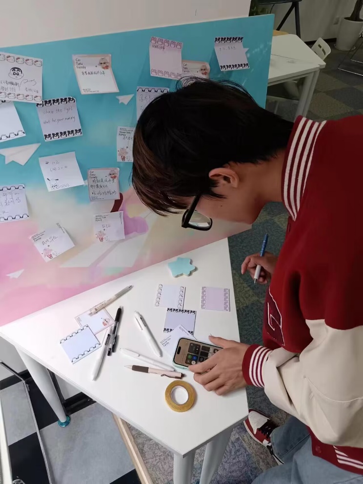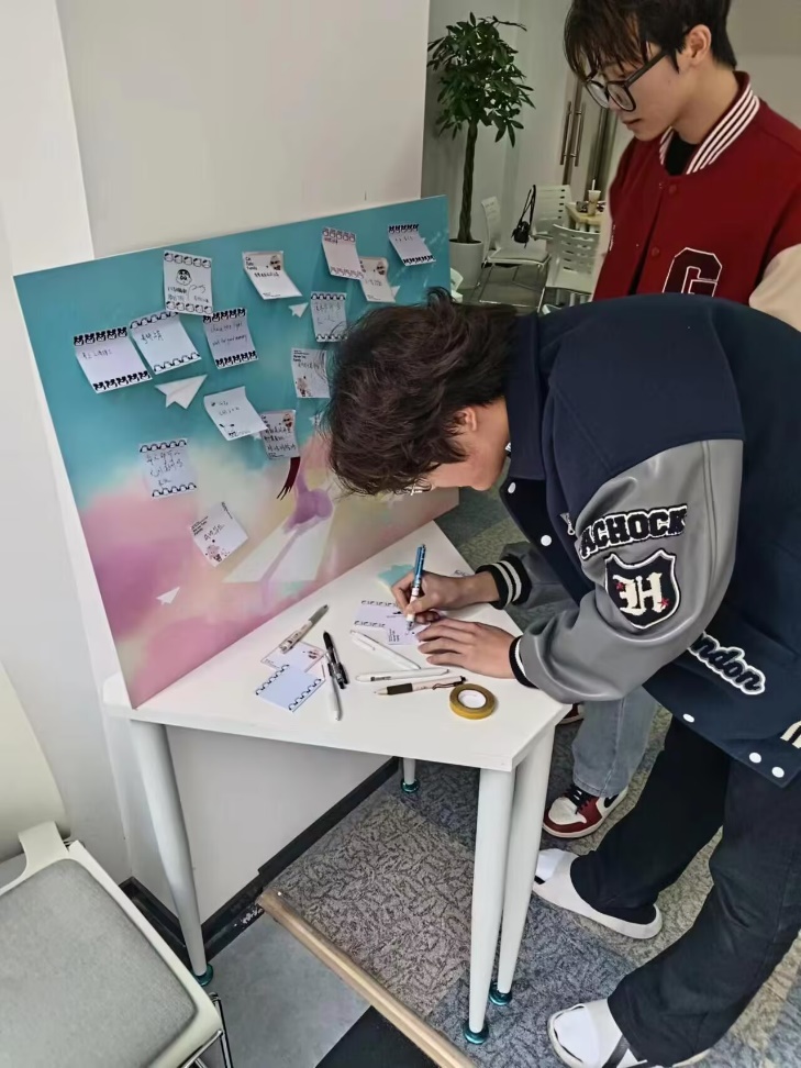 活动现场,主办方将精心准备的活动展板和便利贴拿出,众多考研学子纷纷来到心愿墙前,拿起笔,在便利贴上写下自己的考研心愿和奋斗目标。有的写下了“考研必胜,不负韶华”;有的则表达了“愿所有努力都不被辜负,梦想成真”的美好愿望。每一张便利贴都凝聚着大家的坚定信念和不懈追求。除了写下心愿,活动还设置了接力传递环节。同学们可以将自己的便利贴贴在心愿墙上,并随机抽取一张其他学子的便利贴,了解其心愿和奋斗目标,以此形成心愿接力。这一环节不仅让学子们感受到了来自同龄人的支持和鼓励,还增进了他们之间的交流和友谊。